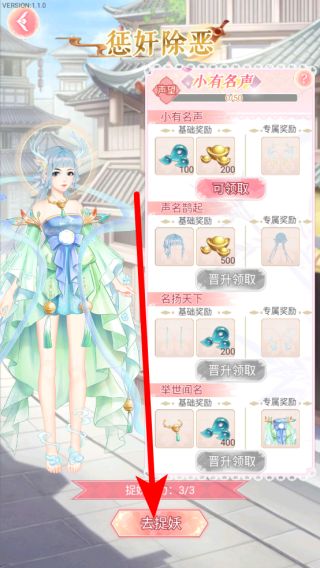 4、在懲奸除惡等相關(guān)界面,點(diǎn)擊去捉妖按鈕,參與捉妖玩法,完成捉妖任務(wù)可獲取聲望與獎(jiǎng)勵(lì),提升角色相關(guān)能力。