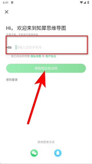 3、在登錄頁面,輸入手機(jī)號,勾選后點(diǎn)擊獲取短信驗(yàn)證碼。