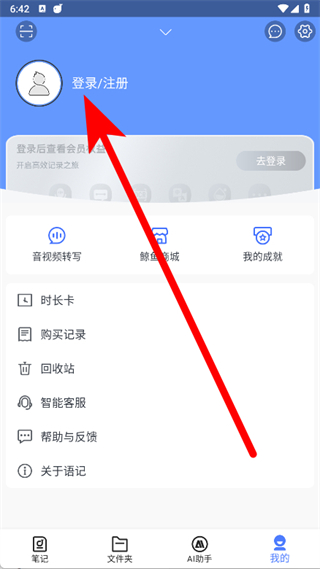 1、打開訊飛語記,點擊底部導航欄的我的。