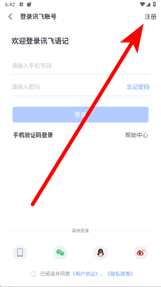 3、進入登錄界面后,點擊右上角的注冊選項。