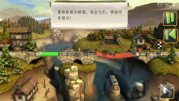 4、完成橋梁搭建后,點(diǎn)擊相應(yīng)按鈕,讓載有谷物的馬車(chē)行駛過(guò)橋,若橋梁穩(wěn)固且符合花費(fèi)要求,即可過(guò)關(guān)。