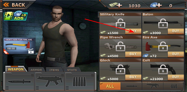 2、購(gòu)買的武器,查看在武器的購(gòu)買界面,消耗游戲貨幣購(gòu)買武器,提升了自身的戰(zhàn)斗力。