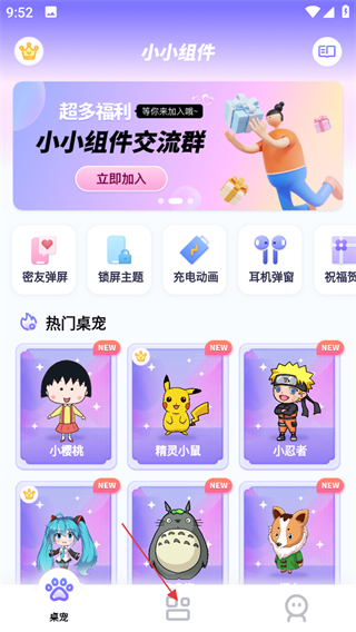 1、進(jìn)入軟件首頁,點(diǎn)擊底部小組件圖標(biāo),進(jìn)入小組件頁面。