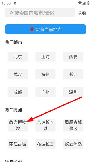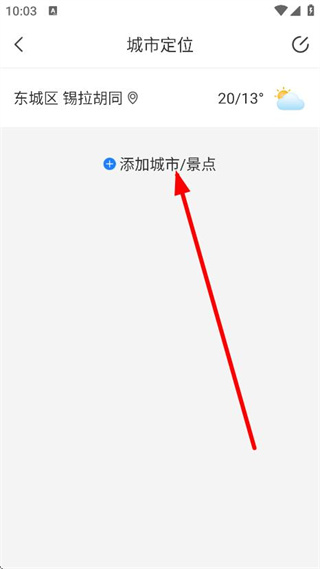 2、在城市定位頁(yè)面,點(diǎn)擊添加城市景點(diǎn),進(jìn)入城市景點(diǎn)選擇頁(yè)面。