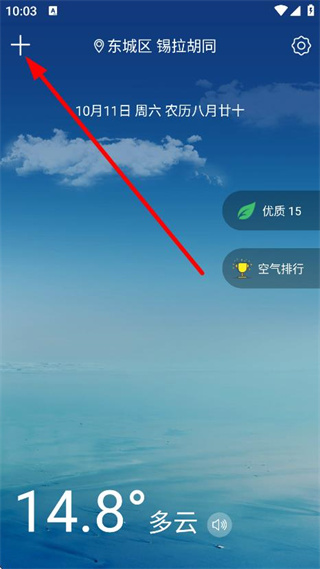 1、在軟件主界面,點(diǎn)擊左上角的+號(hào),進(jìn)入城市定位頁(yè)面。