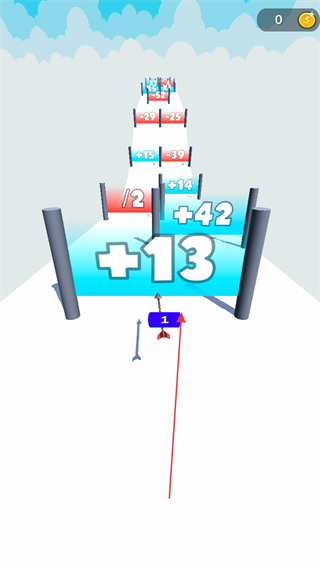 1、游戲開始,操控角色前進(jìn),通過選擇賽道上帶有+XX數(shù)字的標(biāo)識(shí)牌,增加箭的數(shù)量。