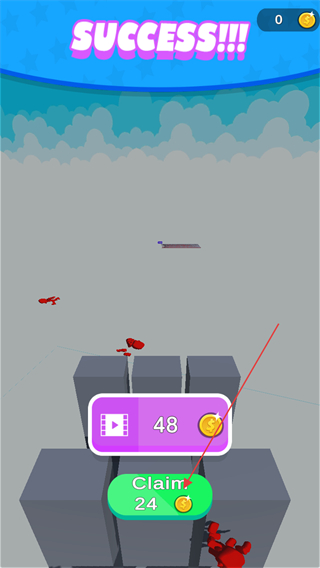 4、成功抵達(dá)終點(diǎn)完成關(guān)卡,點(diǎn)擊Claim按鈕,領(lǐng)取金幣等通關(guān)獎(jiǎng)勵(lì),也可選擇觀看視頻獲取雙倍獎(jiǎng)勵(lì)。