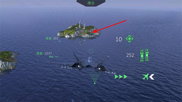 4、攻擊目標(biāo),在飛行過程中,瞄準(zhǔn)島嶼上的目標(biāo)區(qū)域,發(fā)起攻擊,完成戰(zhàn)斗任務(wù)并獲取得分。