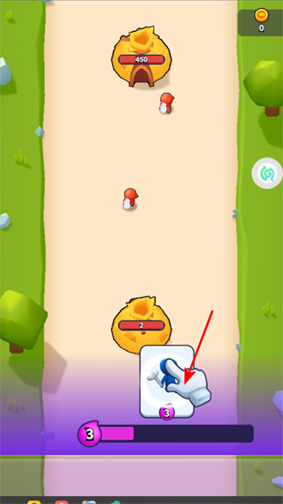 2、部署戰(zhàn)斗單位,按照箭頭指引,點擊下方的單位卡片,將己方戰(zhàn)斗單位精準部署至戰(zhàn)場,為后續(xù)攻防奠定基礎(chǔ)。