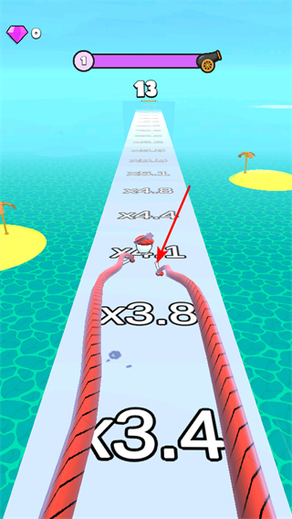 1、積累體型,在跑酷過程中不斷收集場景中的元素,使自身角色的體型逐漸增大,提升能力。