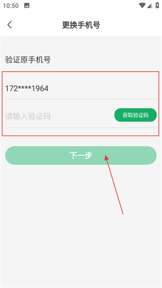 4、在更換手機號頁面,輸入信息后,點擊下一步,完成手機號更換操作。
