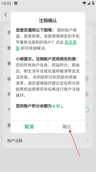 4、在注銷確認(rèn)窗口,點(diǎn)擊確認(rèn),完成賬戶注銷操作。