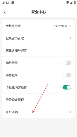 3、在安全中心頁面,點(diǎn)擊賬戶注銷,彈出注銷確認(rèn)窗口。