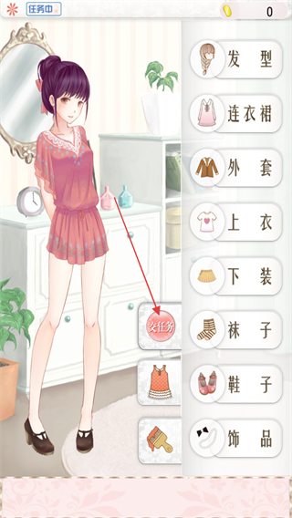4、完成上衣、下裝、鞋子等整體搭配后,點(diǎn)擊交任務(wù)提交換裝成果。