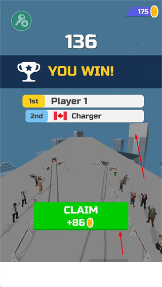 3、成功贏得比賽后,玩家可獲得排名和金幣獎勵(lì),點(diǎn)擊CLAIM可領(lǐng)取獎勵(lì)。