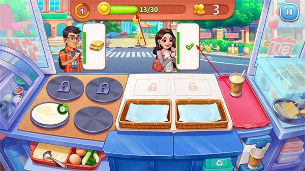 2、成功制作出顧客所需的美食并交付后,會(huì)獲得相應(yīng)的進(jìn)度推進(jìn),同時(shí)顧客會(huì)給出確認(rèn)。