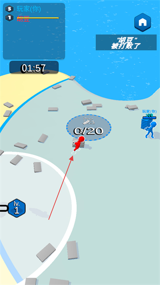 2、搬運(yùn)磚塊過(guò)程中,避免被其他玩家攻擊,若遇到敵人,可嘗試躲避或反擊,同時(shí)關(guān)注搬運(yùn)進(jìn)度0/20。