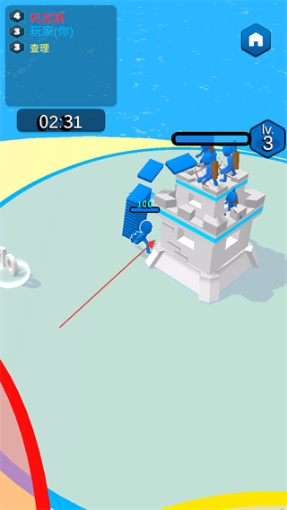 3、將磚塊搬運(yùn)至城堡處,提升城堡等級(jí)如提升至lv3,增強(qiáng)自身實(shí)力。