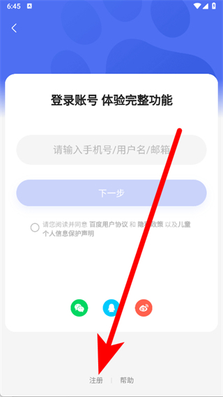 3、進入登錄界面后,點擊頁面底部的注冊選項。
