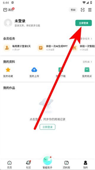 2、在我的頁面,點擊右上角的立即登錄按鈕。