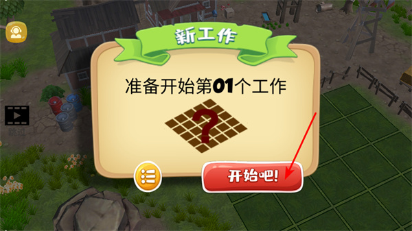 1、開始工作,點(diǎn)擊開始吧按鈕,開啟了第01個(gè)工作稍微任務(wù),進(jìn)入了農(nóng)場作業(yè)稍微場景。