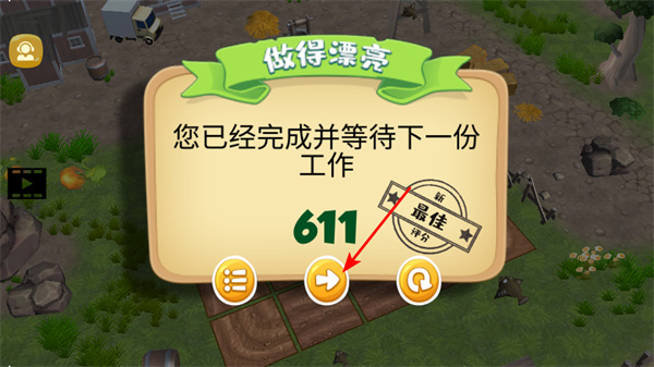 3、繼續(xù)任務(wù),完成當(dāng)前工作后,點(diǎn)擊箭頭按鈕,進(jìn)入下一份工作任務(wù),持續(xù)推進(jìn)游戲進(jìn)程。