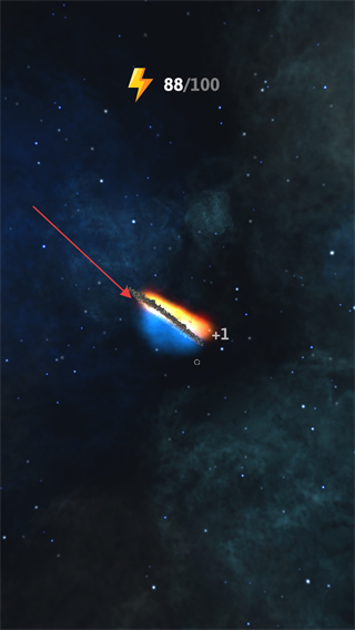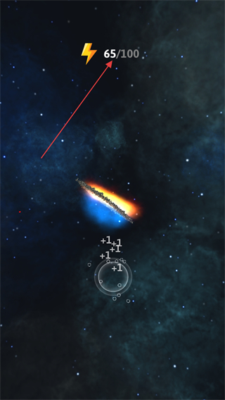 2、點擊星球附近帶有+1標識的地方,收集資源,提升閃電標志的電量數(shù)值。