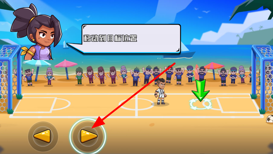 1、通過點擊或滑動移動控制足球角色在場地內(nèi)移動,調(diào)整位置,為后續(xù)的射門等動作創(chuàng)造有利條件。