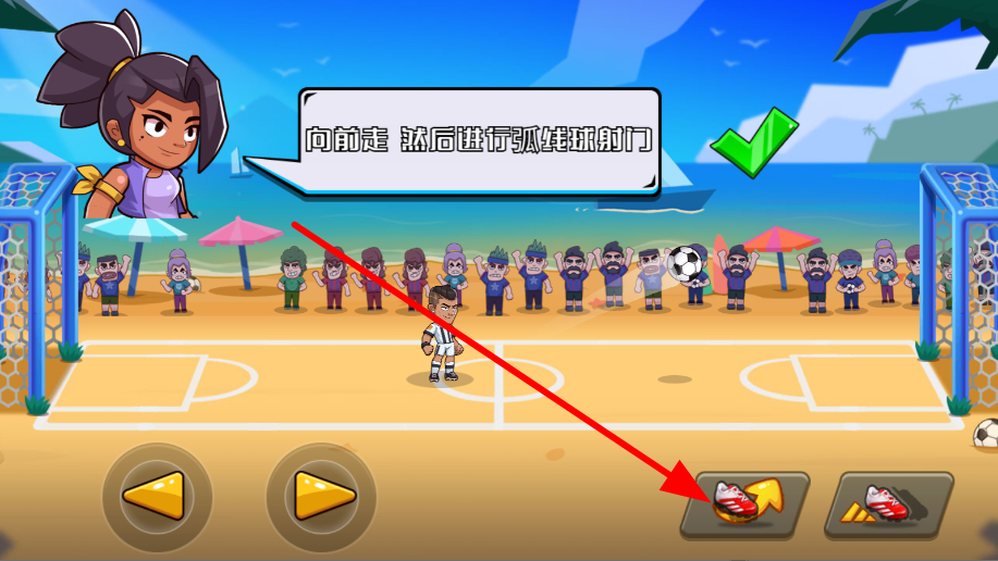 2、選擇弧線射門的操作方式,讓足球以弧線軌跡飛行,增加射門的難度與觀賞性,提升進球概率。