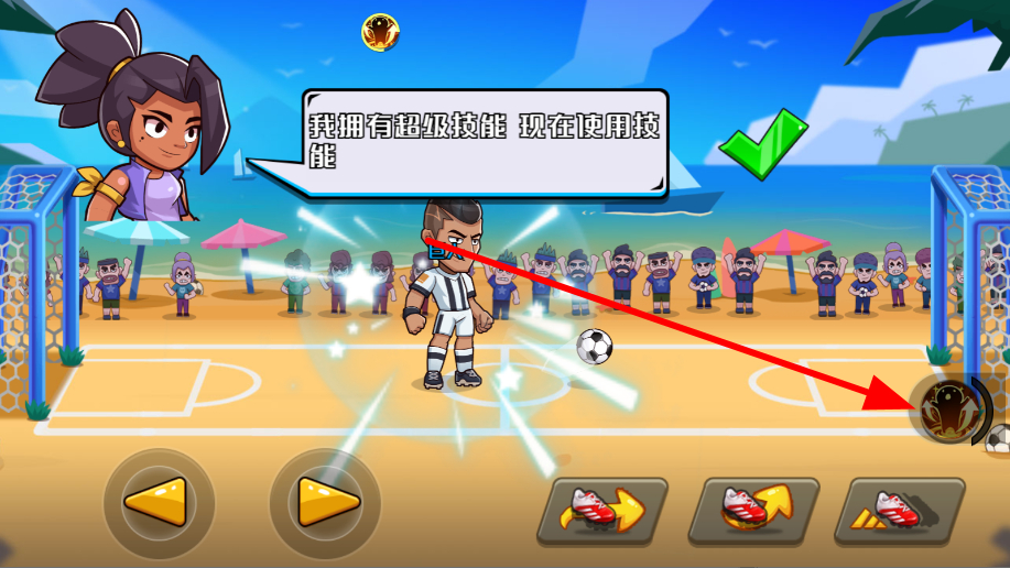 4、玩家可以點擊超級技能按鈕,釋放強大的技能效果,助力角色在比賽中取得優(yōu)勢,增加獲勝可能。