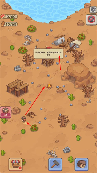 1、可操控角色在地圖中行走,收集資源,還能解鎖新營地,拓展游戲區(qū)域。