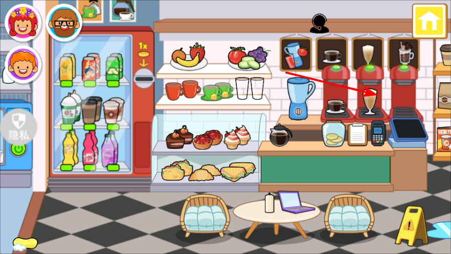 4、在咖啡店場景中制作冷飲,點擊飲品制作設(shè)備,制作相應飲品,完成經(jīng)營任務(wù)。