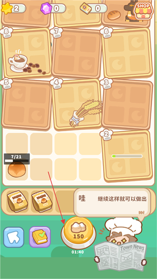 2、留意屏幕中的任務(wù)提示,比如收集一定數(shù)量的面包7/21,按要求持續(xù)制作面包。