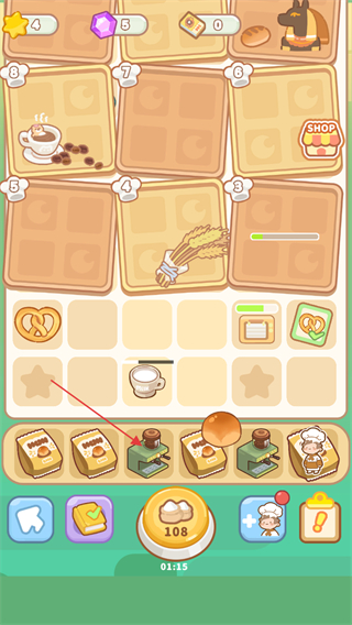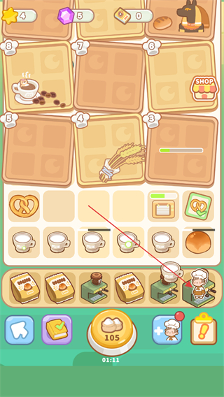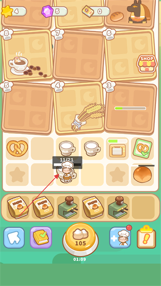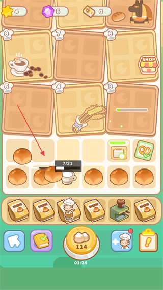 2、點擊咖啡機,加工面包等材料,獲取新食品。