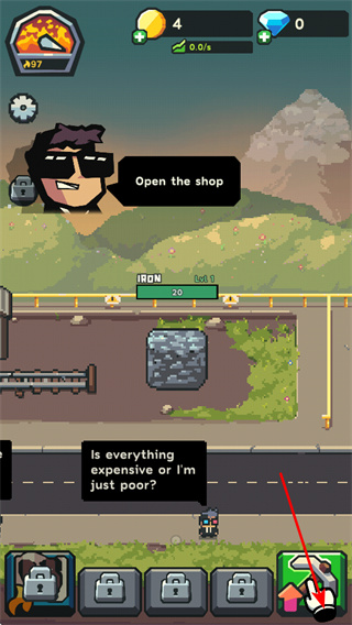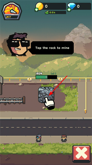 為新手玩家設(shè)計了明確的起步流程,開局可通過手動點(diǎn)擊石塊挖礦,借助屏幕右下角“鐵鎬標(biāo)識”升級單點(diǎn)效率,點(diǎn)擊礦洞查看挖掘深度并升級設(shè)備應(yīng)對低溫環(huán)境。