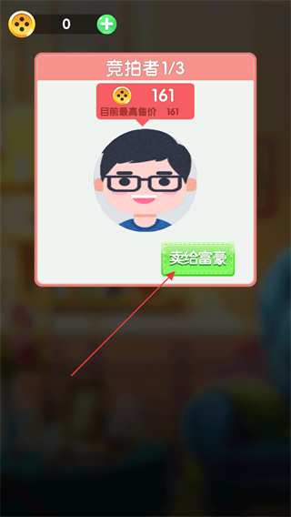 4、查看競(jìng)拍者給出的售價(jià)如161,點(diǎn)擊賣(mài)給富豪獲取收益。