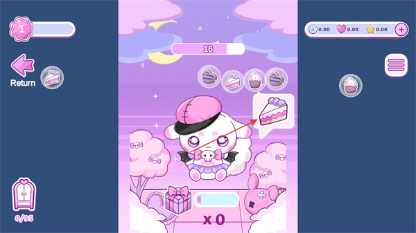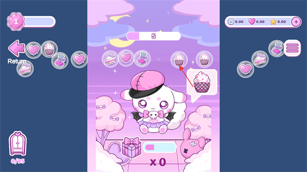 2、點(diǎn)擊空中漂浮的蛋糕、愛(ài)心等物品,收集它們來(lái)填充進(jìn)度條,如進(jìn)度條顯示5。