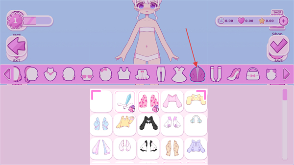 4、選擇上衣類(lèi)別中的衣服,點(diǎn)擊給角色穿上,打造可愛(ài)造型。