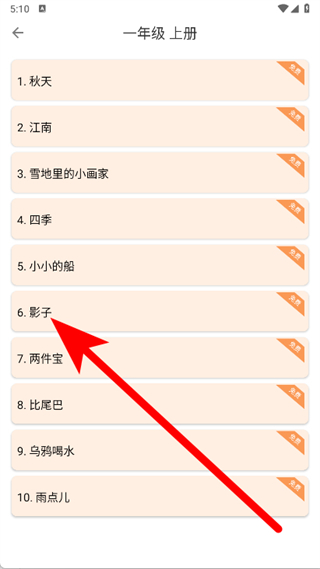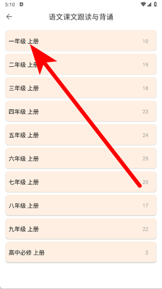 4、在一年級上冊列表中,點(diǎn)擊想要背誦的課文。