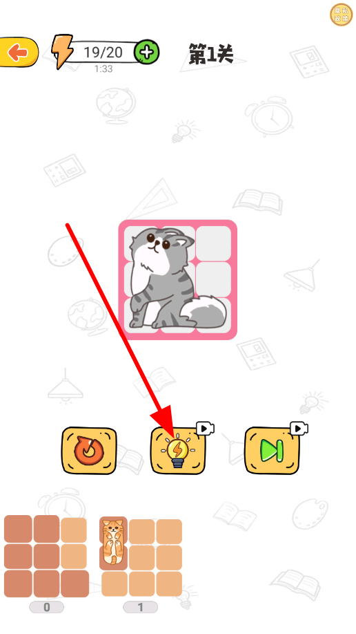 2、若遇到思路困難,可以點(diǎn)擊燈泡形狀的提示按鈕,獲取拼圖的相關(guān)提示。