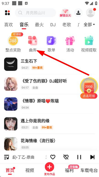 1、在軟件首頁(yè),點(diǎn)擊曲庫(kù),進(jìn)入樂(lè)庫(kù)頁(yè)面。