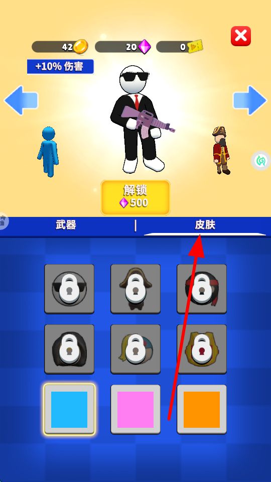 3、在皮膚界面,可以花費相應(yīng)資源解鎖不同的角色皮膚,更換角色外觀還有屬性加成。