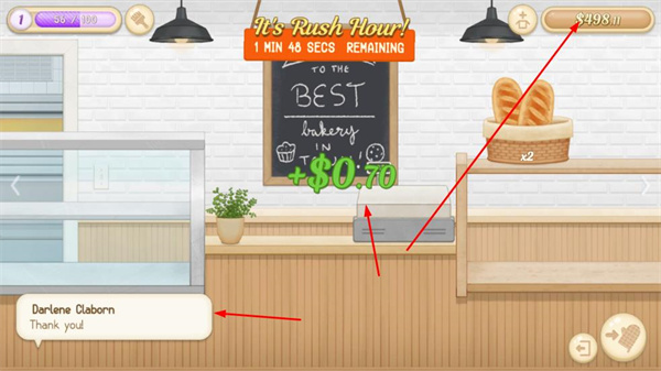 4、完成烘焙并交付給顧客后,會(huì)獲得游戲內(nèi)貨幣獎(jiǎng)勵(lì),在高峰時(shí)段還可能獲得額外收益,積累貨幣可用于店鋪經(jīng)營等更多操作。