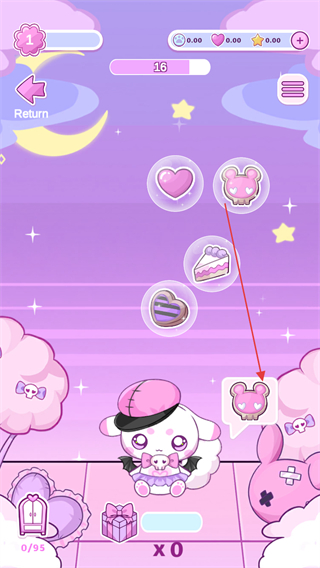2、游戲開始后,點擊空中漂浮的心形、蛋糕等圖標(biāo),收集它們來填充上方進(jìn)度條。