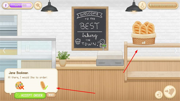 1、在烘焙店界面,當(dāng)顧客下單后,點擊ACCEPT ORDER接受訂單,準(zhǔn)備制作對應(yīng)的烘焙食品。