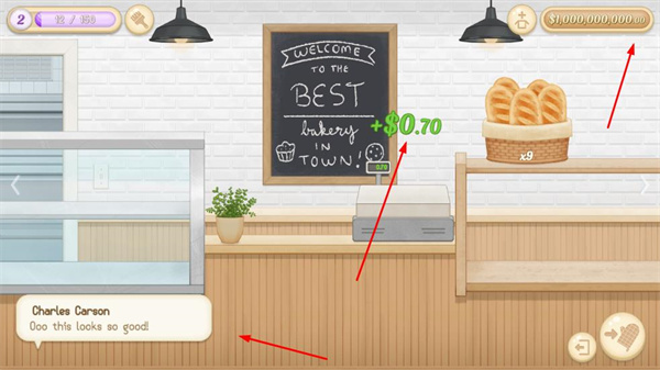 4、將烘焙食品交付給顧客后,會獲得游戲內(nèi)貨幣獎勵,積累貨幣可用于店鋪經(jīng)營、解鎖新品類等更多操作。