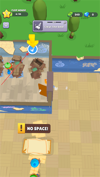 4、當出現(xiàn)Cleartheweed提示,操控角色到指定區(qū)域,點擊清理雜草的按鈕,完成清理任務(wù),推進游戲進程。