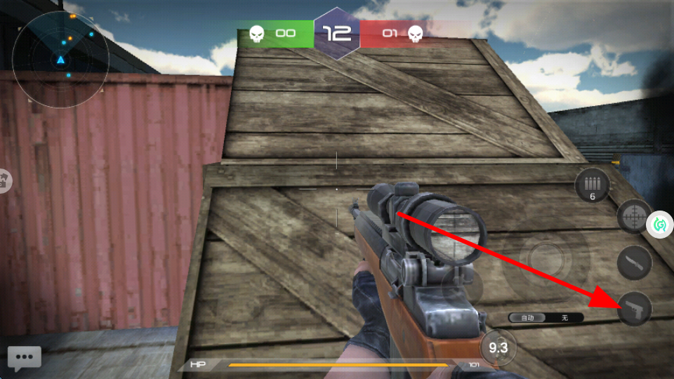 4、戰(zhàn)斗過(guò)程里,可以根據(jù)戰(zhàn)場(chǎng)情況,點(diǎn)擊切換槍械按鈕,選擇更換合適槍械,更好打擊敵人。