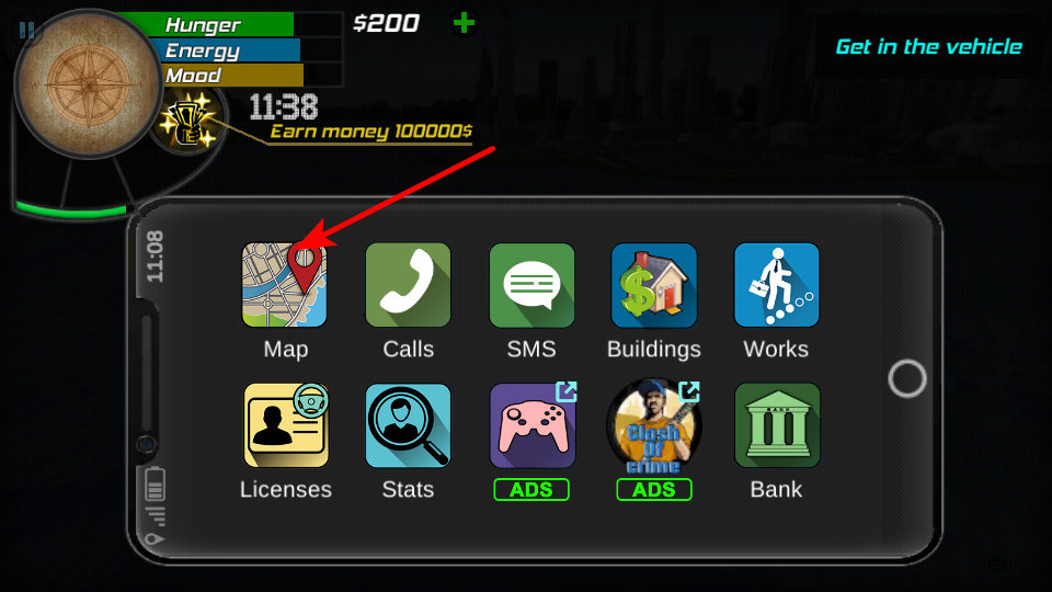 1、查看地圖,點(diǎn)擊手機(jī)界面的Map圖標(biāo),查看地圖,獲取車輛和任務(wù)地點(diǎn)位置信息。