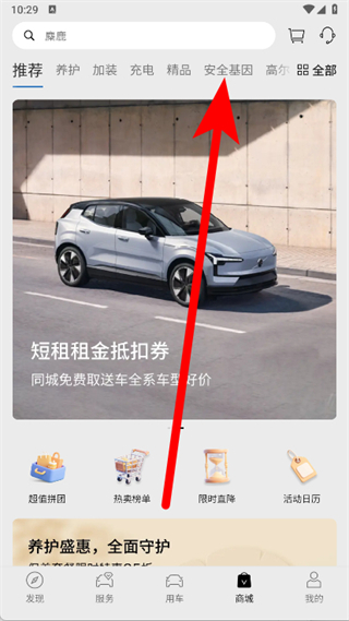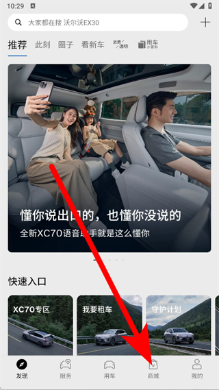 1、打開(kāi)沃爾沃汽車APP,點(diǎn)擊底部商城。